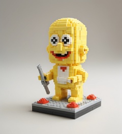 Lego pixel art,toy,3d model,detailed,playful,creativity,fine craftsmanship,childhood,hobby,indoor,studio lighting,<lora:微型像素-000009:0.6>,Spongebob,Ōboshi,Squidward,