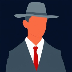 Flat Illustration,  silhouette of a man wearing a hat and suit with a red tie on a dark blue background