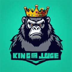 gaming logo design,  an illustration of a gorilla wearing a crown on his head with the words "king of the jungle"