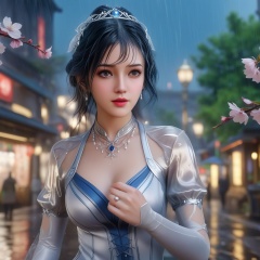 <lora:707-DA-XL-斗罗大陆-唐舞桐:0.8>(,1girl, ,best quality, ),looking at viewer, ,ultra detailed 8k cg, ultra detailed background,  ultra realistic 8k cg,          cinematic lighting, cinematic bloom, (( , )),,  , unreal, science fiction,  luxury, jewelry, diamond, pearl, gem, sapphire, ruby, emerald, intricate detail, delicate pattern, charming, alluring, seductive, erotic, enchanting, hair ornament, necklace, earrings, bracelet, armlet,halo,masterpiece, (( , )),, realistic,science fiction,mole, ,cherry blossoms,(((, , ultra high res, (photorealistic:1.4), raw photo, 1girl, wet clothes, rain, sweat, ,wet, )))(( , ))   (cleavage), (),