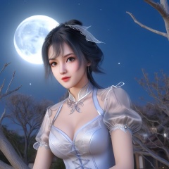 <lora:707-DA-XL-斗罗大陆-唐舞桐:0.8>(,1girl, ,best quality, ),looking at viewer,  ,ultra detailed background,ultra detailed background,ultra realistic 8k cg, ,masterpiece, (( , )),, ,fiction,mole,,      ,(cleavage), (),  ,see-through, lace, (((, solo, moon, , bare_tree, )))(cleavage),