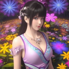 <lora:709-DA-XL-斗破苍穹-小医仙:0.8>(,1girl, ,best quality, ),looking at viewer,,anime,(masterpiece, top quality, best quality, official art, beautiful and aesthetic:1.2), (1girl)	, , (cleavage),extreme detailed,(fractal art:1.3),colorful, flowers ,highest detailed,()    (cleavage), (),