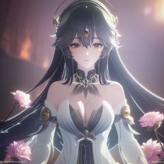 <lora:711-DA-鸣潮-女神:0.8>(,1girl, ,best quality, ),looking at viewer,,anime,(masterpiece, top quality, best quality, official art, beautiful and aesthetic:1.2), (1girl)	, , (cleavage),extreme detailed,(fractal art:1.3),colorful, flowers ,highest detailed,()    (cleavage), (),