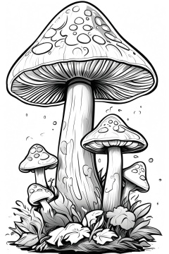 Manga style illustration, line art, pencil art, simple background, white background, monochrome, greyscale, artist name, no humans, mushroom