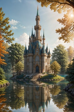 blue sky, Fantasy Park ,Lakes, (wonderland:1 ), Adequate sunlight,reflection, true light and shadow, perfect lighting, no humans,Realistic, Overlooking, Representative,boutique, Masterpiece, Intricate, High Quality, Best Quality, Ultra HD,high res, Full Detail, ,Authenticity, Take photos,