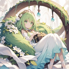 In a pure and flawless white world,there is a mischievous and cute girl,lying on a large green fur,as if she has fallen into some mysterious dream. On this dreamy land,every corner is filled with endless imagination and adventure. The green fur in front of her,as if it were a gift from nature,is soft and elastic,as if it were wrapping the girl into a world full of vitality and wonder. The girl's eyes are shining with curiosity and excitement,and she seems to be communicating with this fur,feeling every trace of its temperature and emotion. And at the edge of this fur,a huge vortex is slowly rotating. It looks **** a mysterious portal leading to the unknown distance.,