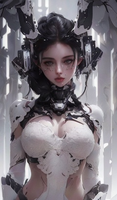 (photorealistic, best quality, ultra high res, extremely detailed eyes and face:1.3),(full_shot:2.2),1girl,big breasts,slender legs,show the whole body sexy figure,big ass,3D,kehuan,wearing a mecha,cold killer,exquisite face,the white mecha is worn on the body,future warrior,black hair,(dark environment:1.5),(detailed light),feather,leaves,nature,(sunlight),river,(forest),(bloom),],<lora:kehuanjijia_v1:0.4>,<lora:babi V2>,, (8k, RAW photo, best quality, masterpiece:1.2),(realistic, photo-realistic:1.3), ultra-detailed, extremely detailed cg 8k wallpaper,(crystalstexture skin:1.2), (extremely delicate and beautiful), (perfect hands, perfect anatomy:1.2),