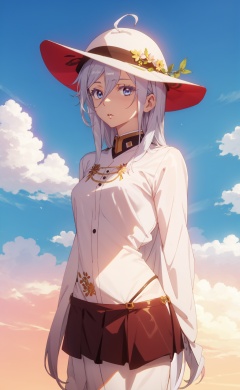<lora:Milize-000014:0.8>,Milize CYQL,1girl,looking at viewer,solo,white hair,long hair,hair between eyes,antenna hair,blue eyes,(Strapless_bikini_top:1.5),(High-waisted_shorts:1.4),(Straw_hat:1.3),(Beach_resort_background:1.4),teardrop,profile,Prague streets, Midnight, Streetlights, Cobblestones, Atmosphere,(Bluebell flowers, Ancient oaks, Blue carpet, Tranquil woodland, Speckled sunlight, Bumblebees:0.5),beautiful detailed sky,beautiful detailed glow,posing in front of a colorful and dynamic background,masterpiece,best quality,beautiful and aesthetic,contrapposto,female focus,wallpaper,