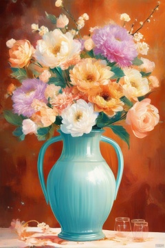 Spring poster, flower vase, healing illustration, frontal composition, wallpaper, extremely high resolution