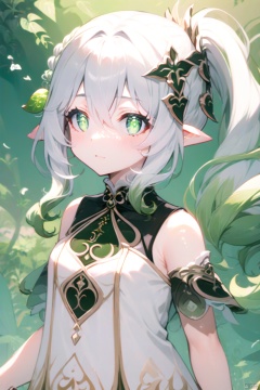 score_4, score_3, score_2, score_1,(masterpiece),(best quality),illustration,ultra detailed,hdr,loli,1girl,hair rings, solo,petite, long hair, very long hair, absurdly long hair, barefoot, looking at viewer, symbol-shaped pupils, white hair, dress, bangs, green eyes, full body, breasts,cross-shaped pupils, hair ornament, white hair, green hair, gradient hair, white dress, nahida (genshin impact)