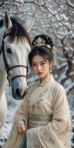 Film grain,film photography,realistic,realistic,portrait photography,cover magazine style,Chinese girl,guitar,with sunglasses,beautiful face,detailed skin texture,light yellow,white and green short shirt,tulle,horse skirt,cross collar,head inlay jade purple gold crown,embroidery,Hanfu,elegant posture,free hand,white space,meticulous brush flowing cloud,three-point composition,red plum snow,rockery,Taihu stone,Shuke horse,looking at the audience,