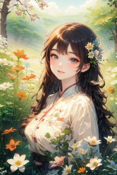 Natural Environment, a girl, flowers, Sun, mottled, grass, squint, (Masterpiece, best quality), (Fine detail beautiful eyes), (Very detailed CG unified 16k wallpaper, Masterpiece, best quality, Super Detail