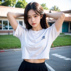 wear like a high school student,arms behind head