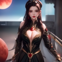 <lora:715-DA-师兄啊师兄-龙吉:0.8>(,1girl, ,best quality, ),looking at viewer,  ,,ultra detailed background,ultra detailed background,ultra realistic 8k cg,, ,masterpiece, (( , )),, ,science fiction,mole, ,    ,red moon, black rose,     (cleavage), (),