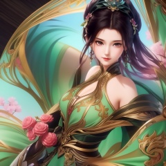 <lora:715-DA-师兄啊师兄-龙吉:0.8>(,1girl, ,best quality, ),looking at viewer,,anime,(masterpiece, top quality, best quality, official art, beautiful and aesthetic:1.2), (1girl)	, , (cleavage),extreme detailed,(fractal art:1.3),colorful, flowers ,highest detailed,()    (cleavage), (),