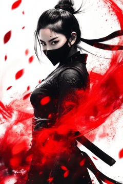 大师作品,最好画质,1girl,white theme,red theme, 忍者,真人