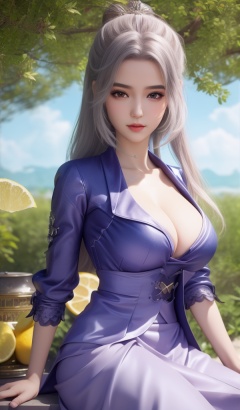 <lora:716-DA-师兄啊师兄-云霄-紫服:0.8>(,1girl, ,best quality, ),looking at viewer,  ,ultra detailed background,ultra detailed background,ultra realistic 8k cg, ,masterpiece, (( , )),,  fiction,mole, ultra realistic 8k cg, ,      , lemon blossoms,  (cleavage), (), ,,,
