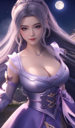 <lora:716-DA-师兄啊师兄-云霄-紫服:0.8>(,1girl, ,best quality, ),looking at viewer,  ,ultra detailed background,ultra detailed background,ultra realistic 8k cg,, ,masterpiece, (( , )),, ,   ,   cure blossom, full moon,night,night sky,  (cleavage), (), ,,