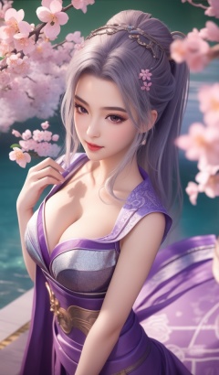 <lora:716-DA-师兄啊师兄-云霄-紫服:0.8>(,1girl, ,best quality, ),looking at viewer,  ,ultra detailed background,ultra detailed background,ultra realistic 8k cg,, ,masterpiece, (( , )),, ,   plum blossoms,    ,,  (cleavage), (), ,,