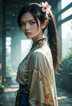1girl,angry,black hair,flower,hairclip,long hair,looking at viewer,looking back,mina ashiro,parody,ponytail,solo,solo focus,ruanyi0752,<lora:d4rkpurpXLP:0.5>,<lora:mina-ashiro-s1-ponyxl-lora-nochekaiser:1>,<lora:0752 Wisteria butterfly hanfu_v1_pony:1>,hanfu,chinese clothing,, cinematic film still,score_9,score_8_up,score_7_up,dramatic lighting,(realistic:1.3),highly detailed,high budget,bokeh,cinemascope,moody,epic,gorgeous,film grain,grainy,masterpiece,best quality,perfect anatomy,very aesthetic,official art,8k,
