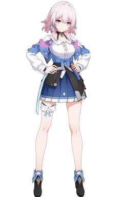 8k, best quality, masterpiece, (ultra-detailed), (high detailed skin), (white background:1.3), (full body:1.25), (white background), standing, looking at viewer, (solo:1.3), hands on hips, <lora:March7-A3-Tanger:0.8>, sanyueqi, 1st clothes, 1girl, blue skirt, pink hair, white shirt, bangs, long sleeves, blue eyes, (beautiful_face), ((intricate_detail)), clear face, ((finely_detailed)), fine_fabric_emphasis, ((glossy)), full_shot,