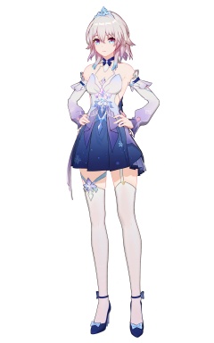 8k, best quality, masterpiece, (ultra-detailed), (high detailed skin), (white background:1.3), (full body:1.25), (white background), standing, looking at viewer, (solo:1.3), hands on hips, <lora:March7-artiwaifu-Tanger:0.8>, sanyueqi, 2nd clothes, blue princess short dress, 1girl, blue eyes, bangs, bare shoulders, dress, white thighhighs, (beautiful_face), ((intricate_detail)), clear face, ((finely_detailed)), fine_fabric_emphasis, ((glossy)), full_shot,