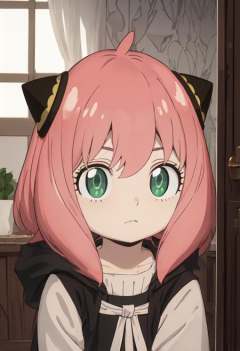 best quality, masterpiece, highres, solo, (anya_forger_spyxfamily:1.10), 1girl, child, hairpods, looking at viewer, meme, indoors, peeking out, anime_style, 5 <lora:anya_forger_spyxfamily:0.80>
