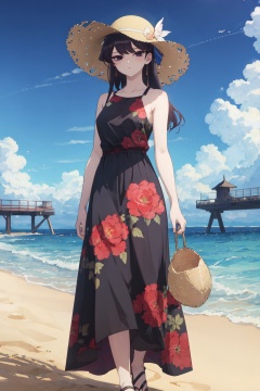 <lora:Shouko-000010:0.8>,Shouko CYQL,1girl,solo,looking at viewer,long hair,black hair,black eyes,(Tropical_print_maxi_dress:1.5),(Straw_wide-brim_hat:1.4),(Woven_slides:1.3),(Beach_pier_background:1.4),tearing_up,bust,Desert wildflowers, Arid landscape, Desert bloom, Colorful desert, Springtime explosion, Desert oasis,(Olive trees, Terra cotta pots, Sun-kissed orchard, Evening hues, Mediterranean landscape, Olive harvest:0.5),beautiful detailed sky,beautiful detailed glow,posing in front of a colorful and dynamic background,masterpiece,best quality,beautiful and aesthetic,contrapposto,female focus,wallpaper,