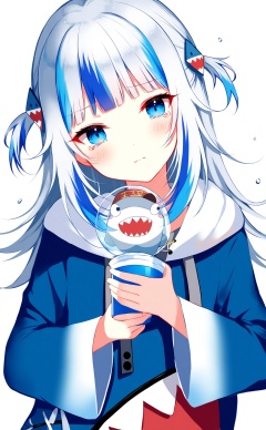 (masterpiece),(best quality),illustration,ultra detailed,hdr,Depth of field,(colorful),loli,[Artist wlop],[[Artist sheya]],Artist hiten_(hitenkei),1girl,gawr gura,virtual youtuber,bloop \(gawr gura\),blue eyes,gawr gura \(1st costume\),multicolored hair,grey hair,hood,streaked hair,hair ornament,blue hair,hoodie,white background,two side up,blue hoodie,shark hair ornament,looking at viewer,bubble,holding,long sleeves,upper body,head tilt,long hair,closed mouth,simple background,hood down,tears,blunt bangs,wide sleeves,blush,water drop,solo,air bubble,