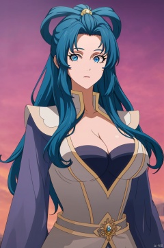 1girl, solo, long hair, breasts, looking at viewer, blue eyes, large breasts, cleavage, blue hair,(masterpiece, 8K, high quality,