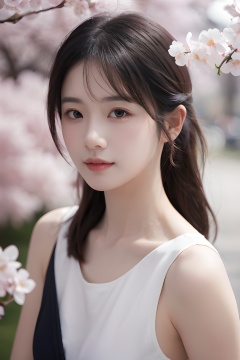 <lora:0809_01:0.7>,a girl with a dreamy expression,surrounded by floating cherry blossom petals in a soft breeze,springtime magic,gentle radiance.korean girl,black hair,, 1girl,realistic,masterpiece, best quality, photorealistic, HDR,detail