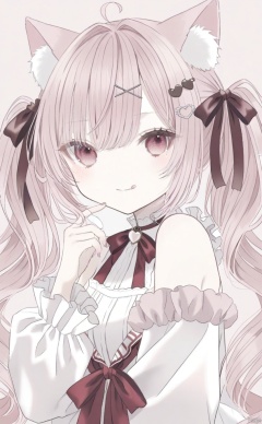 1girl, solo, long hair, looking at viewer, blush, smile, bangs, blonde hair, shirt, hair ornament, red eyes, long sleeves, bow, animal ears, hair between eyes, bare shoulders, closed mouth, white shirt, upper body, pink hair, hair bow, heart, multicolored hair, frills, detached sleeves, choker, tongue, hairclip, puffy sleeves, virtual youtuber, cat ears, tongue out, sailor collar, red bow, animal ear fluff, one side up, hair intakes, x hair ornament, cat girl, puffy long sleeves, white sleeves, :q, heart hair ornament,red sailor collar, frilled sailor collar