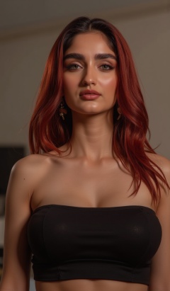 Mallu beauty, sfw, cleavage cutout:1, closeup view, masterpiece, high quality, Les cloth, navel, midriff exposed, hyper-realistic photography captured with the best camera, 3D, HDR, high definition, pore and detailed, intricate detailed, volumetric lights, cinematic lighting, vibrant color, cool actress, beautiful woman, 22 years old, sexy sfw, smirk, red hair, casual tight cotton clothing, hourglass body, luxury home, wide hips, wide hips, wide hips, nice ass, thigh gap, crotch gap, crotch gap, photorealistic photo, huge size natural breasts, full body shot, head to thigh view, looking at viewer, (((thick, curvy body, big breasts))), fair smooth skin, in the style of jclive9988