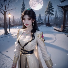 <lora:遮天-瑶曦:0.8> (,1girl, ,best quality, ),looking at viewer,  ultra realistic 8k cg, picture-perfect face,   clean, masterpiece,     cinematic lighting, cinematic bloom, fantasy,  , unreal, science fiction, ((,1girl, pov,))(((,tree, 1girl, full moon,snowing,snow ,solo,     solo focus,  long_hair, looking_at_viewer,  )))  (rich:1.4,)     prestige, luxury, jewelry, diamond, gold, pearl, gem, sapphire, ruby, emerald, intricate detail, delicate pattern, charming, alluring, seductive, erotic, enchanting, hair ornament, necklace, earrings, bracelet, ,