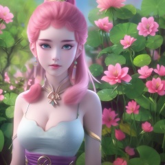 <lora:妖神记-龙羽音:0.8> (,1girl, ,best quality, ),looking at viewer,  ,ultra detailed 8k cg,ultra detailed background,ultra realistic 8k cg,1girl, solo,(bare shoulders:0.85),(masterpiece, best quality),((oil painting style)),sexy young lady,(beautiful face and eyes),(upper body:1.5),(whole body:1.05),(single person:1.2),surrounded by flowers, (lily), roses, floret, vegetation, white, purple, purplish pink,Impressionism,colorful,(Breast size:1.3),(cleavage),
