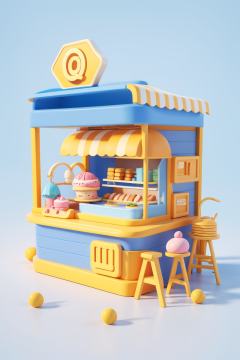 "3D style, Q version cute ice cream stand with a few pastel-colored ice cream cones on display. The stand is set on a simple white surface with minimal background elements, focusing on the delightful and refreshing treats."