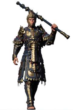 score_9, score_8_up, score_7_up, score_anime, 8k, best quality, masterpiece, (ultra-detailed), (white background,simple background:1.3), solo, hands on hip, (full body:1.1), looking at viewer,<lora:heishenhua-pony-Tanger:0.8>, eishenhua artist style, wukong, dashen, golden armor, 1boy, male focus, beard, facial hair, armor, weapon,