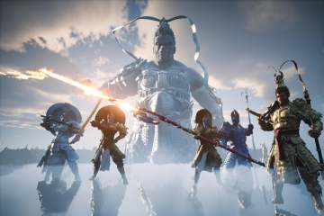 score_9, score_8_up, score_7_up, score_anime, 8k, best quality, masterpiece, (ultra-detailed), <lora:heishenhua-pony-Tanger:0.8>, heishenhua artist style, game style, cg, weapon, multiple boys, armor, sword, holding, helmet, holding weapon, polearm, cloud, sky, shield, full armor, gun, outdoors, A cinematic depiction of a fierce battle, warriors clashing in a stormy battlefield, swords gleaming under lightning strikes. The ground is muddy and torn, with distant mountains barely visible through the rain. Shadows cast by the flames of burning structures flicker across the scene, enhancing the drama and tension. Created using: dramatic chiaroscuro, wide-angle lens, high contrast, intense brush strokes, Renaissance battle painting, motion blur, dynamic composition, vivid realism, hd quality, natural look, <lora:AdvancedEnhancerXLv2:0.5>, movie still, film still, cinematic, cinematic shot, cinematic lighting, 35mm film, <lora:xl_more_art-full-beta2:0.5>, <lora:add-detail-xl:0.5>,