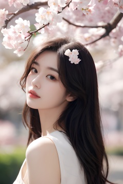 <lora:0817_02:0.4>,simple background,a girl with a dreamy expression,surrounded by floating cherry blossom petals in a soft breeze,springtime magic,gentle radiance.korean girl,black hair,, 1girl,realistic,masterpiece, best quality, photorealistic, HDR,detail
