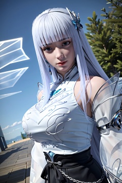 3D,masterpiece,(best quality),official art, extremely detailed cg 8k wallpaper,((crystalstexture skin)), (extremely delicate and beautiful),(highly detailed),(1girl), (solo), (jewelry), (breasts), (earrings), (hair),(hair_ornament),(handwear), (long_hair), (medium_breasts), (clothes),(dress),(skirt),boots,(long_sleeves) ,((upper body)), (wings), (butterfly_wings),(whole body),(sunshine, outdoor,),((looking_at_viewer)),((Facing the camera)),, (big breasts:1.59),Xningxiaodie