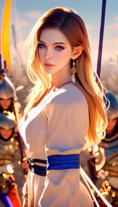 score_9,score_8_up,score_7,MAYE_X,A three-quarter profile shot of a woman's side face. She is dressed in an exquisite white robe with gold patterns and edges. Her gaze is profound,as if staring into the distance. Although the background remains blurred,there are more soldiers and equipment visible,possibly depicting a larger battlefield scenario. Golden hair,female,soft light,natural environment,medium focal length lens,shallow depth of field,calm,natural pose,warm tone,elegance. World of Warcraft splash art,blue eyes highly detailed face background detail,action pose,dramatic,extreme composition,realistic,complex details,cinematic,lighting,photo lighting,lightroom gallery,behance photography,professional photos,girlish,3d,vfx,cgi,rtx,octane rendering,unreal engine,knight,human female,soldiers in background,movie poste,doing a prayer,
