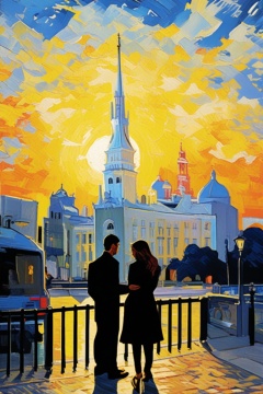 paint artbook style, a surprise proposal at a city landmark,vangogh