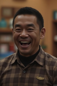 Best Quality,Masterpiece,Ultra High Resolution,(Realisticity:1.4),Original Photo,Cinematic Lighting, 1boy,upper body,standing, on the laugh