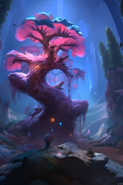 (Magic Universe, Fantasy style) Small view of the universe, Mushroom Planet, Quantum Flower Sea is a region of plants floating in gravity free space. The flower here is like a quantum state of the wave body, the shape is not fixed, change at any time. Each flower is made up of an infinite number of tiny quantum particles, and the color and shape of the petals change at every moment, as if presenting an endless illusion