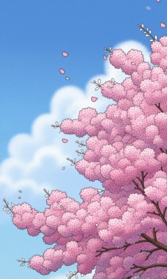 oil painting, Cherry blossoms, Sky (blue), Flowers (pink), Natural scenery, Fresh and clean, Cherry blossom tree, Springtime, Beautiful landscape, Sunlight, Warm atmosphere
