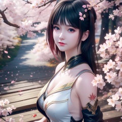 <lora:739-DA-斗破苍穹-慕青鸾:0.8>, (,1girl, ,best quality, ),looking at viewer,  ,ultra detailed 8k cg,ultra detailed background,ultra realistic 8k cg, ,masterpiece, (( , )),, ,science fiction,mole, ultra realistic 8k cg, ,    ,(,cherry blossoms, autumn leaves,perfect cherry blossom,   ), (cleavage),