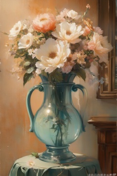 Close up, open window, vase on windowsill, front composition, wallpaper, high resolution, oil painting style, oil painting