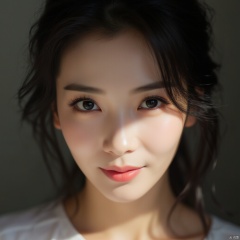(masterpiece, best quality, high resolution),1 chinese girl,black hair,beautiful detailed eyes,cinematic angle,soft light,extremely detailed face,long eyelashes,skin details,light smile,looking at viewer,light and shadow details,