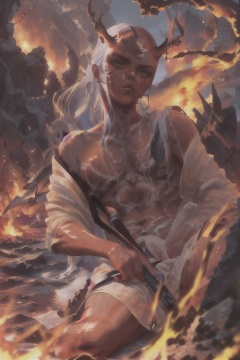 masterpiece,best quality,(8k, RAW photo, best quality, masterpiece:1.2),(realistic, photo-realistic:1.37),stunning 8k fashion photo,rsolo,male focus,1boy,red skin,weapon,yecha_xy,hand, monster, solo, fire, cloud, dragon, sky, molten rock, wings, yecha_xy