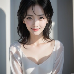 (masterpiece, best quality, high resolution),1 chinese girl,black hair,beautiful detailed eyes,cinematic angle,soft light,extremely detailed face,long eyelashes,skin details,light smile,looking at viewer,light and shadow details,